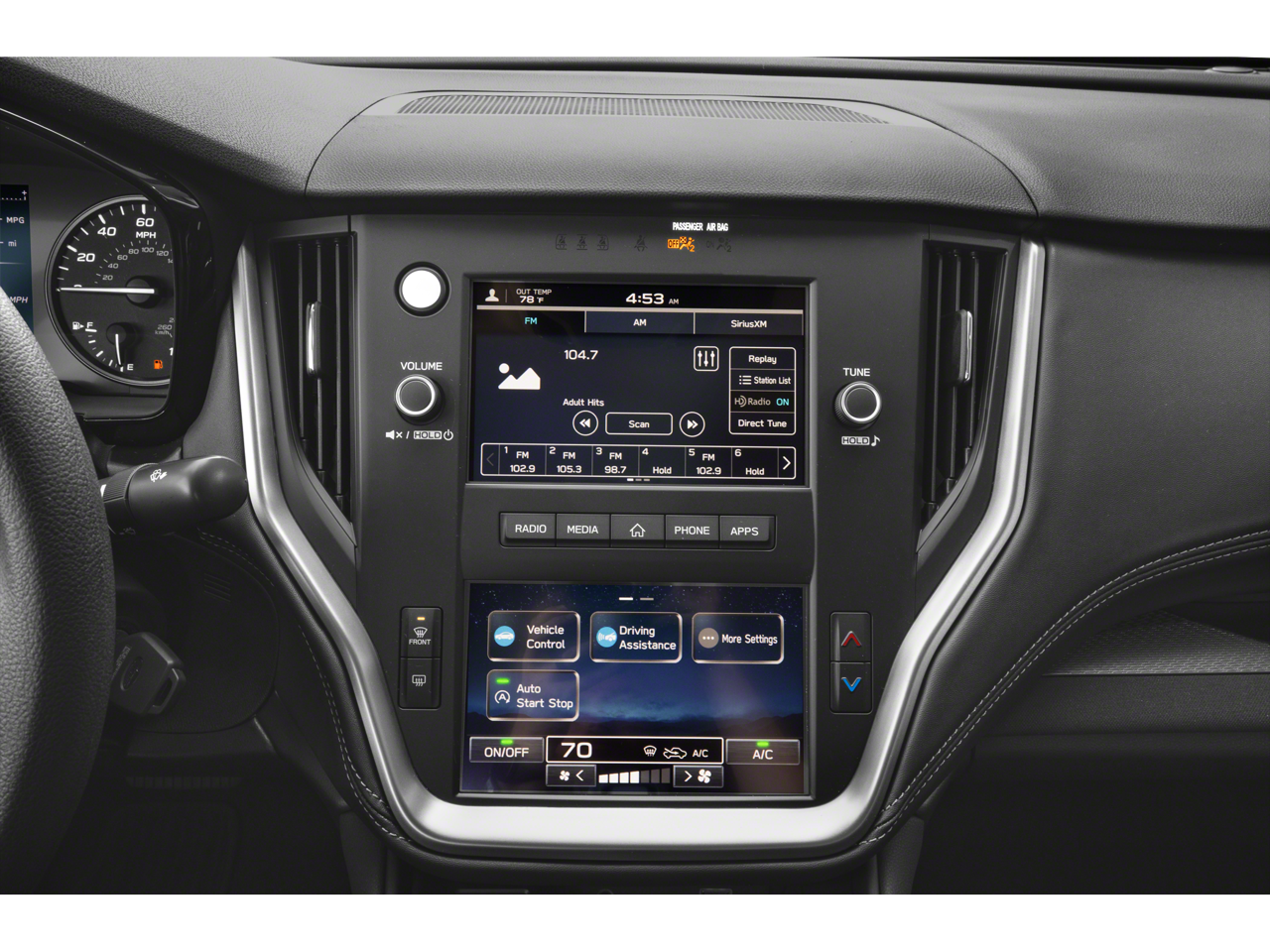 - Radio: Subaru STARLINK Dual 7.0" Multimedia System -inc: AM/FM stereo, HD Radio, multi-touch gesture high resolution display screen, voice activated controls, Bluetooth® audio streaming and hands-free phone connectivity w/SMS text messaging (refer to subaru.com for cell phone compatibility), iPod control capability, SiriusXM (4 months free platinum trial/subscription required after), SiriusXM Travel Link (4 months free trial/subscription required after), smartphone integration for Android Auto, Apple CarPlay and STARLINK cloud applications (refer to subaru.com for app availability), USB audio system update, audio/Bluetooth® steering wheel control switches, 4 speakers, 3.5mm illuminated front auxiliary input jack and illuminated front USB-A input/charge port